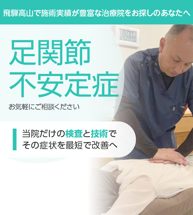 リラクゼーション的なマッサージでは足関節不安定症が根本的に改善することは難しく、繰り返す不安定感や慢性的に足関節不安定症の自覚症状がある場合は今より悪くなる前に早めに対処しておく必要があります。