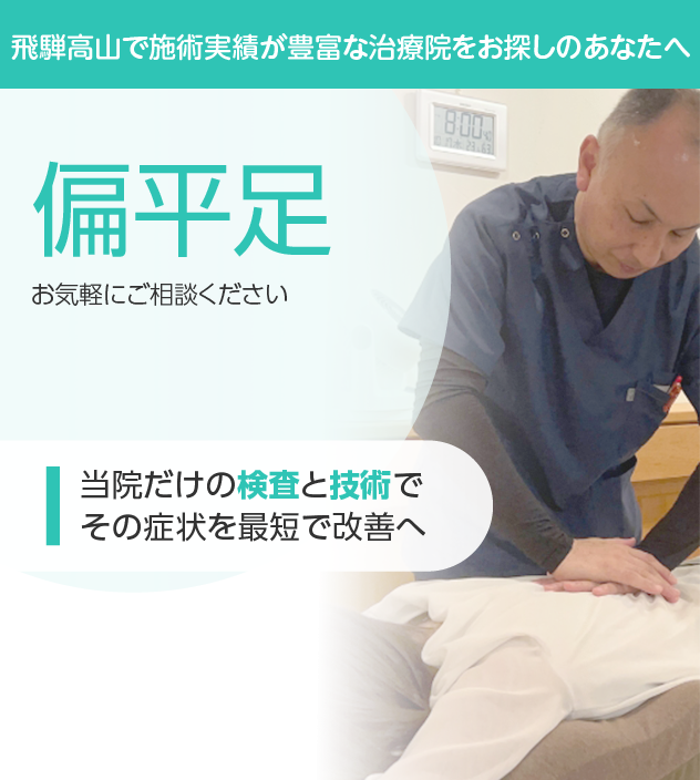 整形外科が一般的ですが、根本改善を目指すなら整体や接骨院での総合的なアプローチもおすすめです。当院では全身のバランスから偏平足に対応いたします。