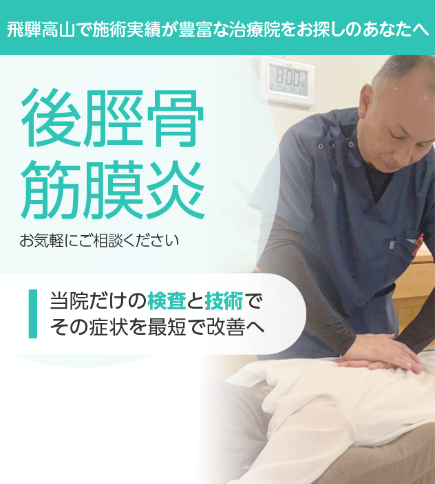 リラクゼーション的なマッサージでは後脛骨筋膜炎が根本的に改善することは難しく、繰り返す痛みや慢性的に後脛骨筋膜炎の自覚症状がある場合は今より悪くなる前に早めに対処しておく必要があります。