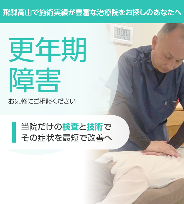 病院やほかの治療院で改善しなかったとしても諦める必要はありません。更年期障害でお困りなら、豊富な施術実績を誇る当院にお任せください。